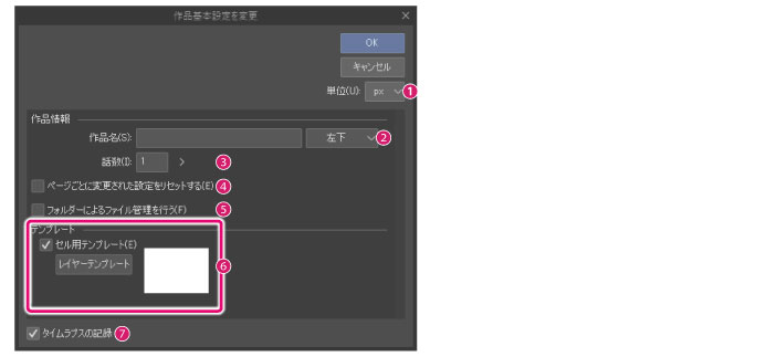 Clip Studio Paint リファレンスガイド 作品基本設定を変更ダイアログ アニメーション