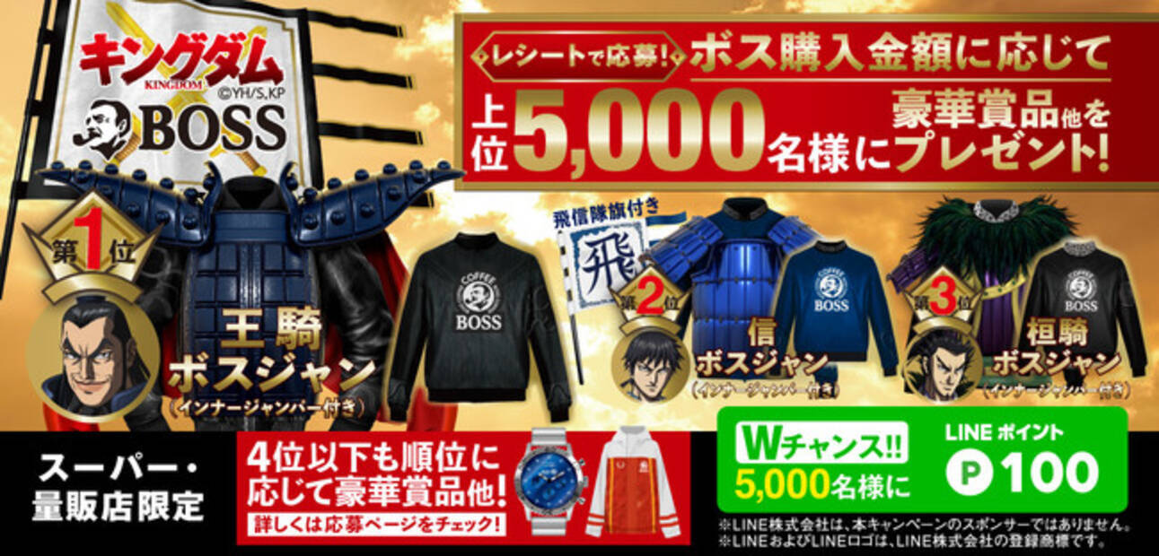 あの大人気アニメ キングダム とコラボレーション サントリーコーヒー boss キングダム オリジナルボスジャン当たる キャンペーン 年8月31日 エキサイトニュース